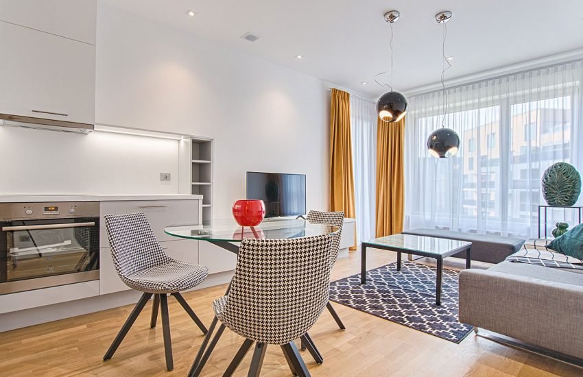 The second bedroom is a corner room with double windows. The kitchen has fabulous space, new appliances, and a laundry area. Other features include rich herringbone floors